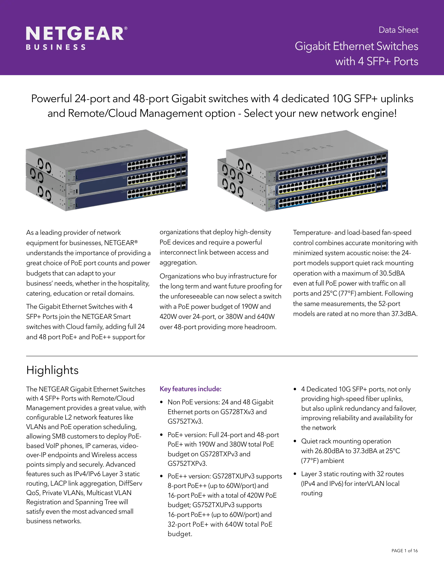 Standalone Smart Switch designed for converged networks, big or small. 1-Year Insight subscription included.